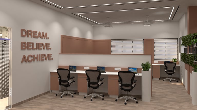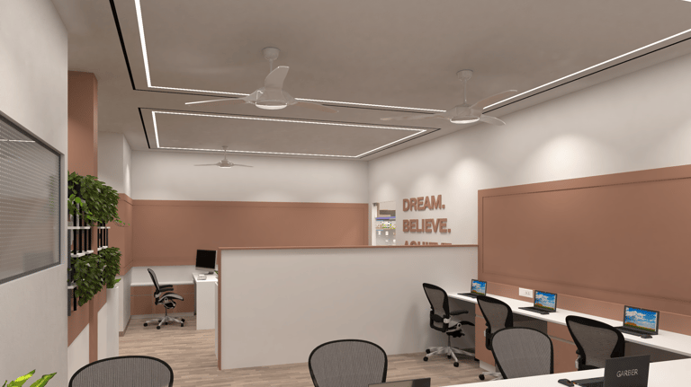 This 1800 sq. ft. office interior project was designed with a clear focus on functionality, brand identity, and employee well-being. The goal was to create a modern, efficient workspace that balances professionalism with warmth, while allowing smooth day-to-day operations and future flexibility.